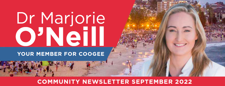 Authorised by Dr Marjorie O’Neill MP, 15/53-55b Frenchmans Rd, Randwick NSW 2031